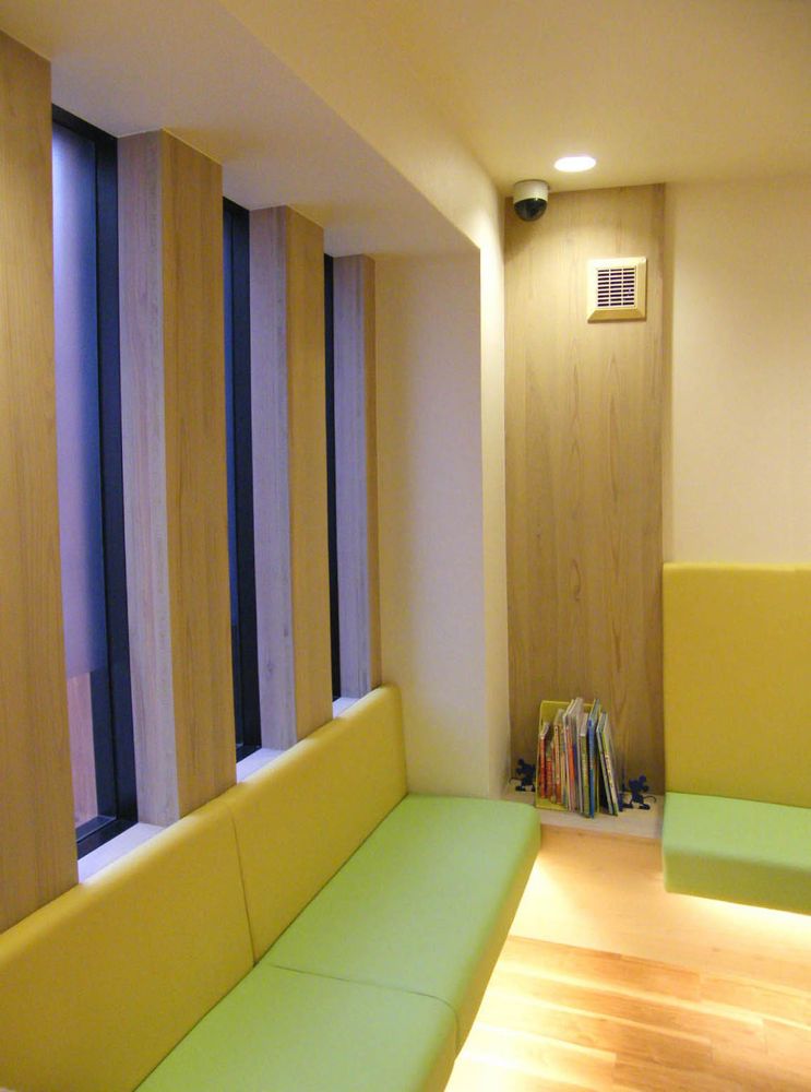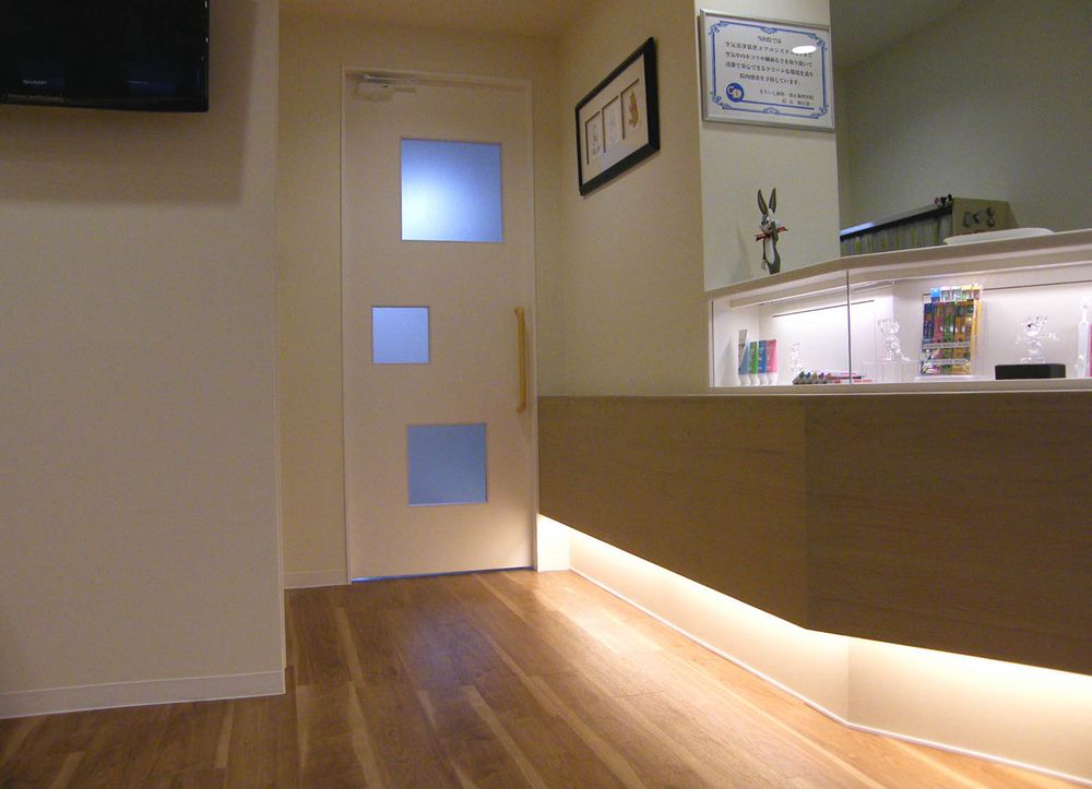 自然素材を取り入れ、照明を工夫した待合いと、医長の意向から、話題となるような