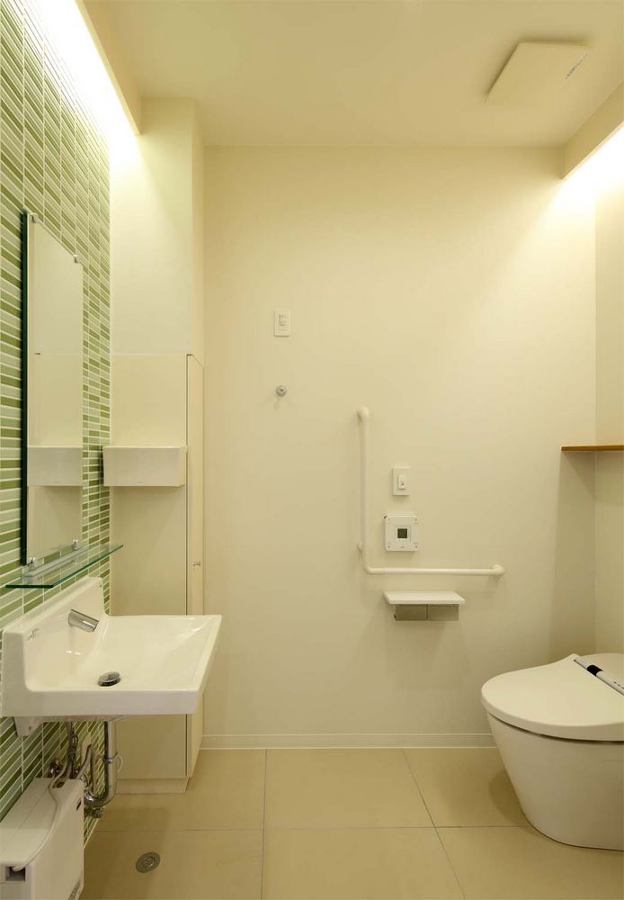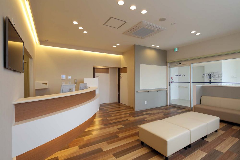 待合いは高齢者の目にも優しい間接照明と落ち着いた雰囲気のインテリアとしています。
