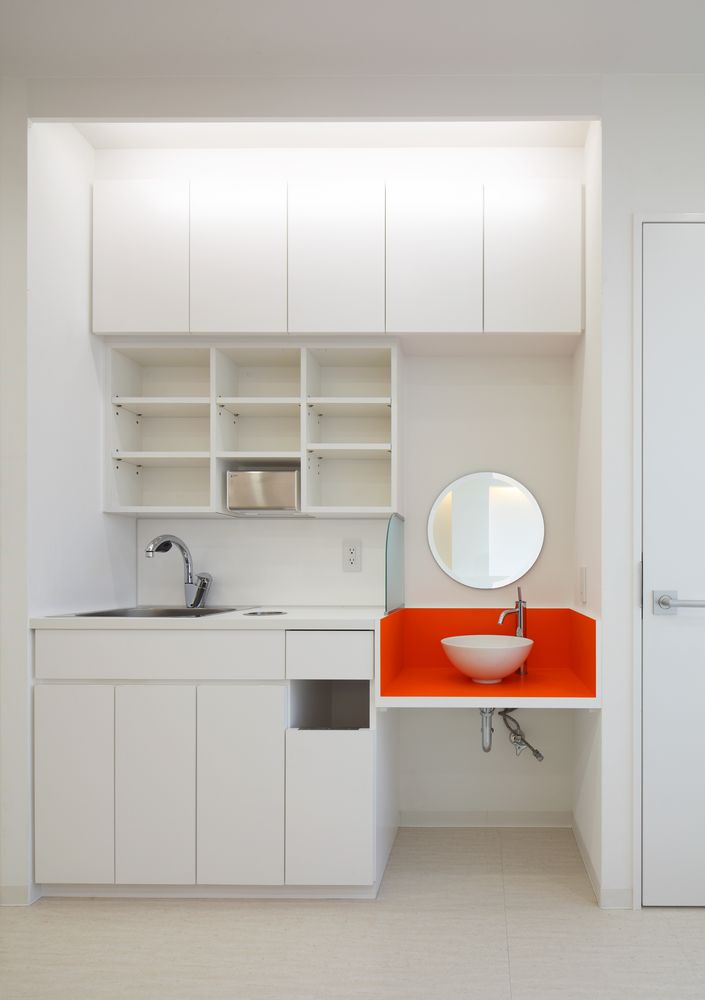 インテリアは、白を基調とし、間接照明で柔らかい雰囲気と女性を意識した水廻りにしました。