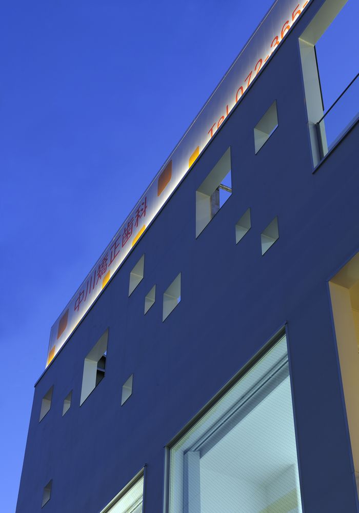 駅前という立地を生かしてファサードはサインを兼ねてアイストップとなるよう配慮、、