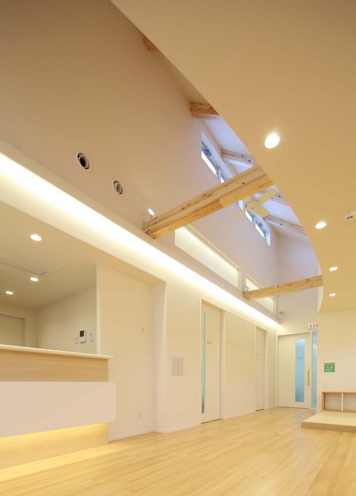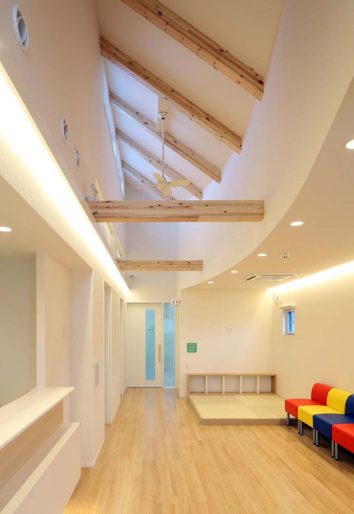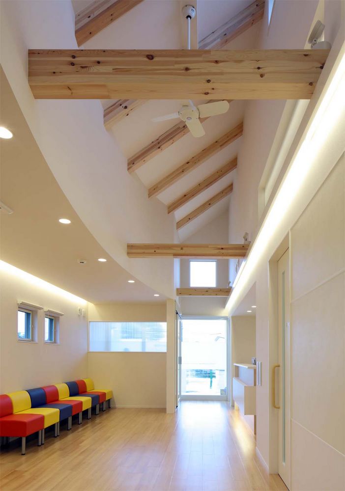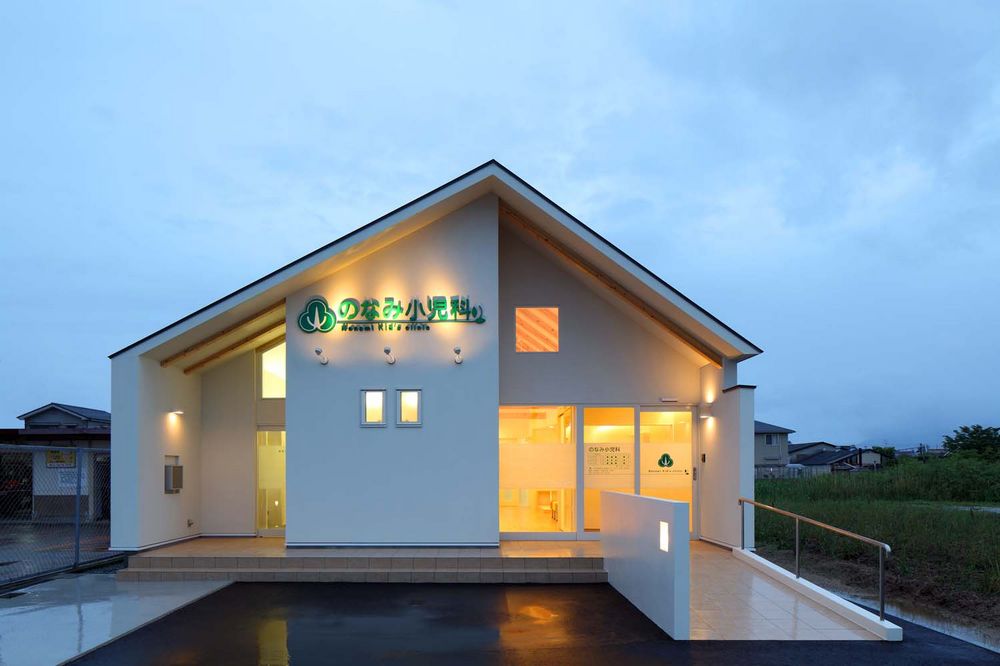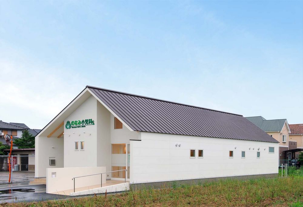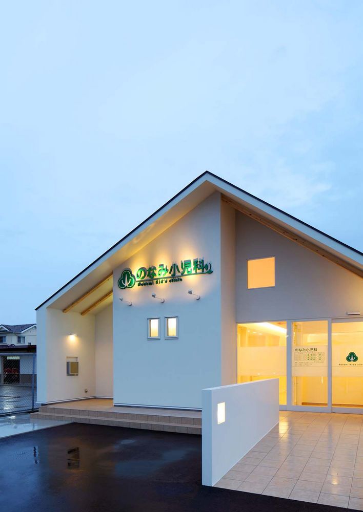患者(親子)を迎え入れる家のようなクリニックをイメージして、家型(切妻)屋根としています。