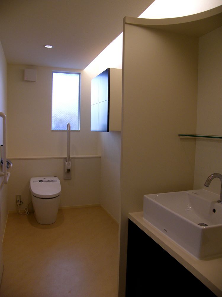 動線分離スタイル、地域性を考慮したバリアフリーデザイン、全て土足仕様の医院となっています。