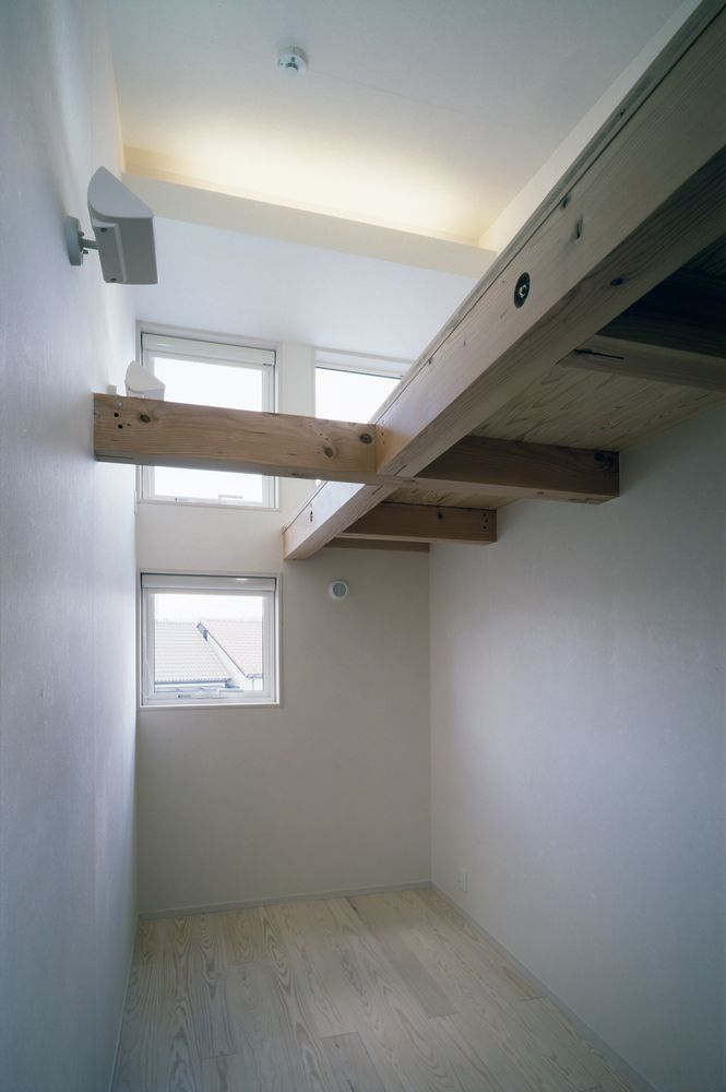 3階の個室と水回りは高い天井を有効利用している。